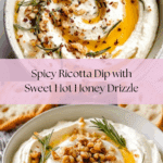 This Spicy Ricotta Dip with Hot Honey is a creamy and flavorful appetizer that combines smooth ricotta cheese blended with lemon and olive oil, topped with a sweet and spicy honey drizzle, crunchy walnuts, and fragrant rosemary. Perfect for serving with crackers or crostini, this dip offers a delightful balance of creamy, sweet, and spicy flavors.