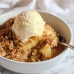 - Bake: Place the pie dish in the preheated oven and bake for 30 to 35 minutes, or until the topping turns golden brown and the apple filling bubbles up around the edges.