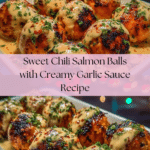 Keywords: salmon balls, sweet chili salmon, creamy garlic sauce, baked salmon appetizer, seafood balls, easy salmon recipe