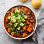 Keywords: sweet potato chili, black bean chili, vegan chili, plant-based chili, easy chili recipe, healthy chili