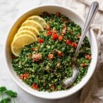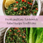 This fresh and vibrant Tabbouleh Salad recipe features fine bulgur wheat soaked in a zesty lemon-olive oil dressing, combined with a generous amount of fresh parsley, mint, tomatoes, and green onions. It’s a refreshing, nutritious, and easy-to-make Middle Eastern salad perfect for a light meal or a side dish.