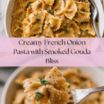 This French Onion Pasta recipe combines the rich, caramelized flavor of traditional French onion soup with tender pasta, creating a comforting, creamy dish. The pasta is simmered in a savory broth infused with caramelized onions, garlic, thyme, and white wine, then finished with smoky gouda and parmesan cheese for an indulgent finish. Perfect as a cozy weeknight meal, it offers the beloved flavors of French onion soup in a satisfying pasta format.