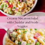 This classic macaroni salad is creamy, tangy, and packed with fresh vegetables and sharp cheddar cheese. It’s the perfect side dish for barbecues, picnics, or any casual gathering. Easy to prepare and always a crowd-pleaser, it’s sure to become a favorite.