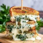 This Vegan Spinach Pesto Grilled Cheese is a delicious plant-based twist on the classic sandwich. Featuring sautéed fresh spinach, flavorful vegan pesto, and melty Daiya Swiss Style slices, it’s a satisfying and savory meal perfect for lunch or a cozy dinner. The sandwich is pan-toasted to a golden crisp, creating a perfect blend of creamy, cheesy vegan goodness with vibrant spinach and aromatic pesto.