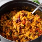 Keywords: Vegetarian Chili Mac, one pot meal, comfort food, chili pasta, vegetarian recipe, easy weeknight dinner