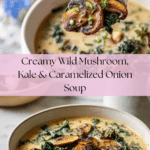 This Wild Mushroom, Caramelized Onion and Kale Soup is a comforting blend of earthy mushrooms, sweet caramelized onions, and nutritious kale. It’s a hearty yet light soup perfect for chilly days or whenever you crave something nourishing and flavorful.