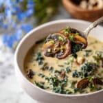This Wild Mushroom, Caramelized Onion and Kale Soup is a comforting blend of earthy mushrooms, sweet caramelized onions, and nutritious kale. It’s a hearty yet light soup perfect for chilly days or whenever you crave something nourishing and flavorful.