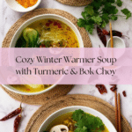 Keywords: Winter soup, warming soup, bok choy soup, turmeric soup, ginger garlic soup, healthy vegetable soup, Instant Pot soup, Asian vegetable soup